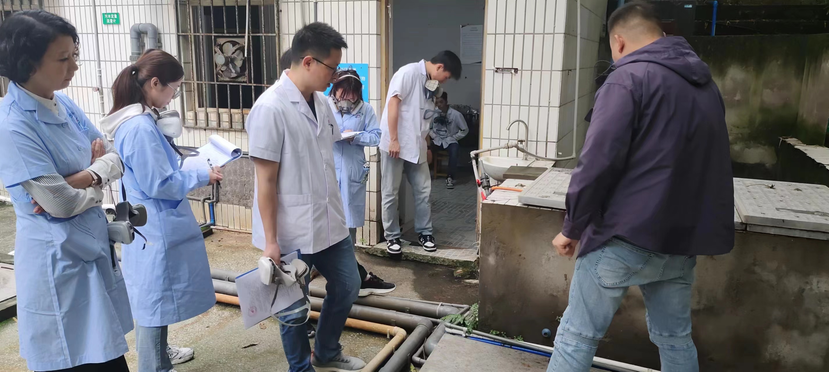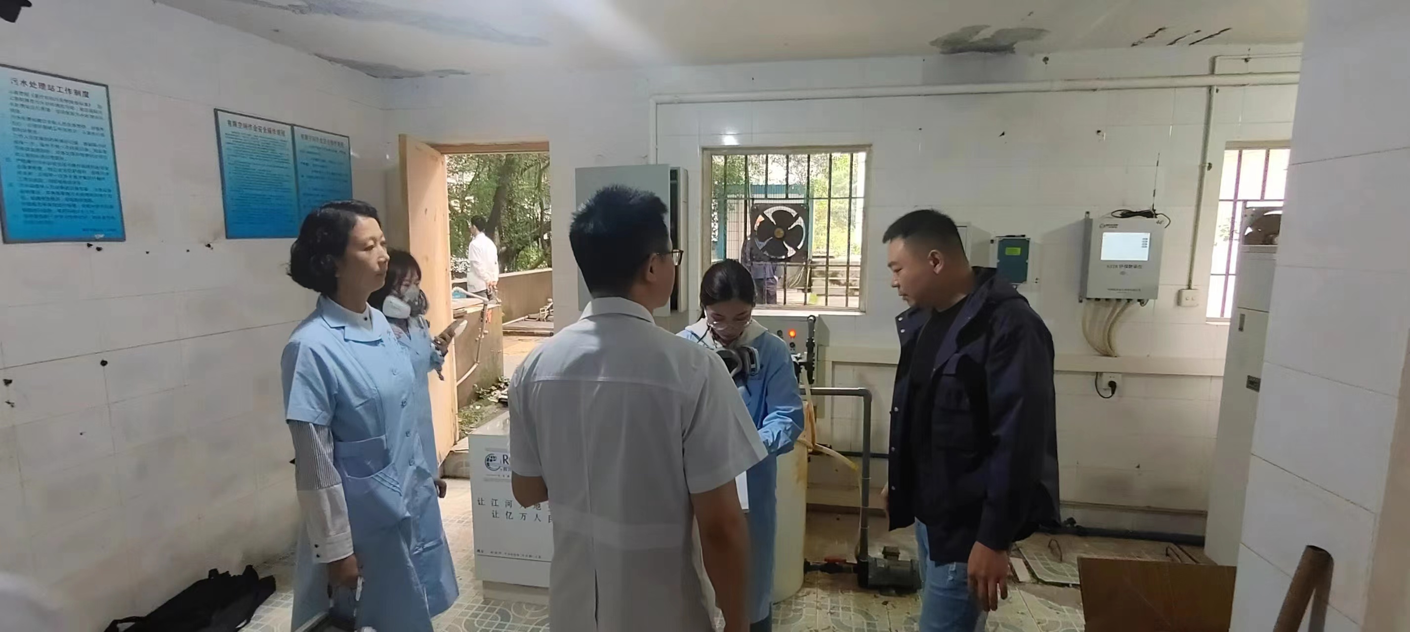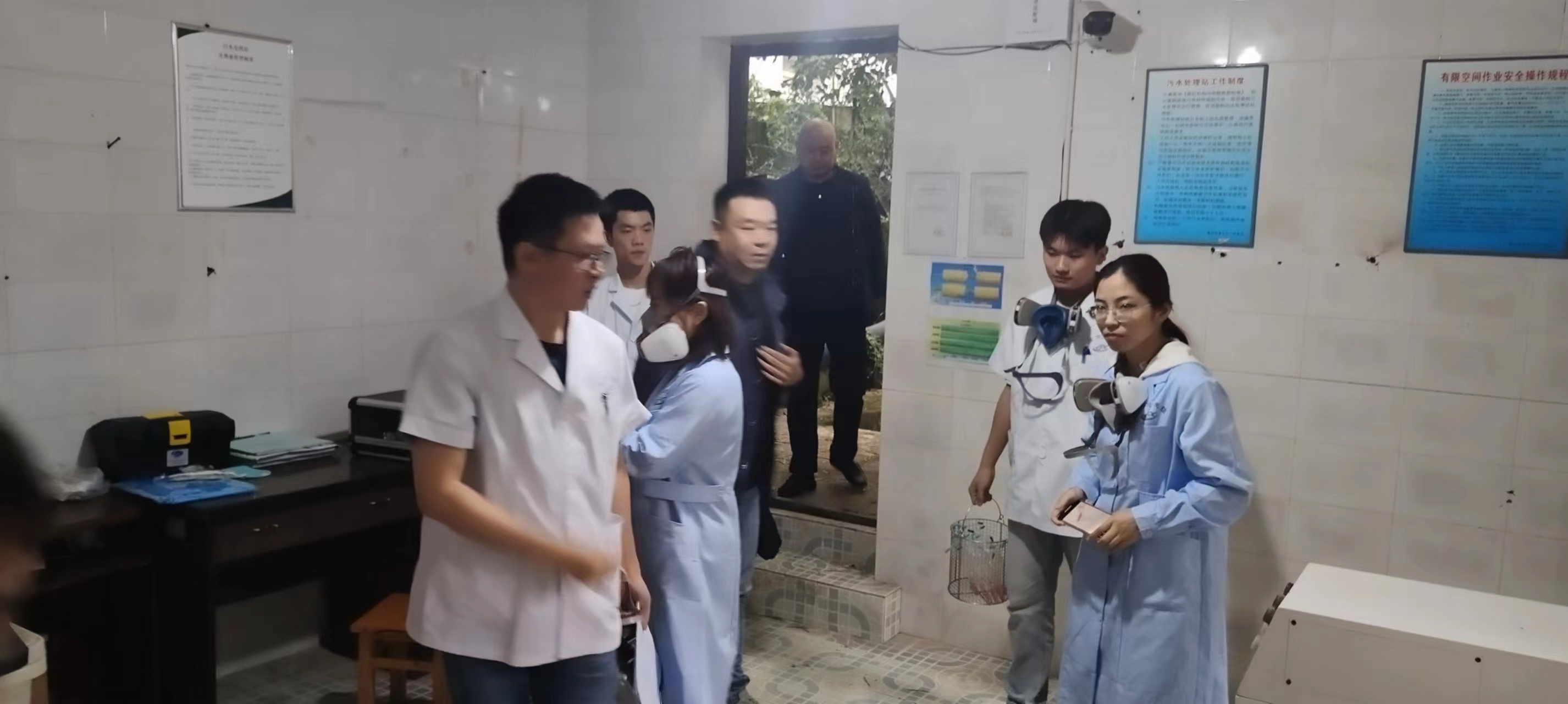 渝北区疾控中心到渝北人民医院老院区污水站检测氯气,我司运维点主管及值班人员积极配合。
